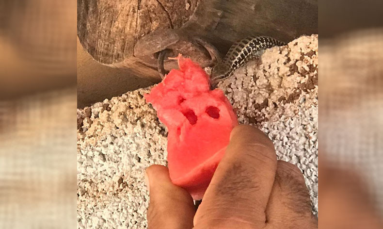 İlçeye bağlı Arpaç (Tığeni) köyünde biber ekimiyle uğraşan İbrahim Mavi, barakasının bir köşesinde halsiz düşmüş hamile bir kertenkeleyi fark etti. Çiftçi Mavi, elleriyle kertenkeleye karpuz yedirtti. İlk başlarda çekingen davranan kertenkele, bir müddet sonra kendisine uzatılan karpuzu çiftçinin ellerinden afiyetle yedi.