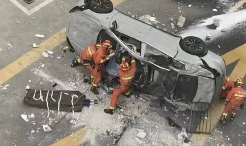 Çinli elektrikli otomobil üreticisi Nio’nun Şanghay’daki merkez binasında bir araç 3. kattan aşağı düştü.