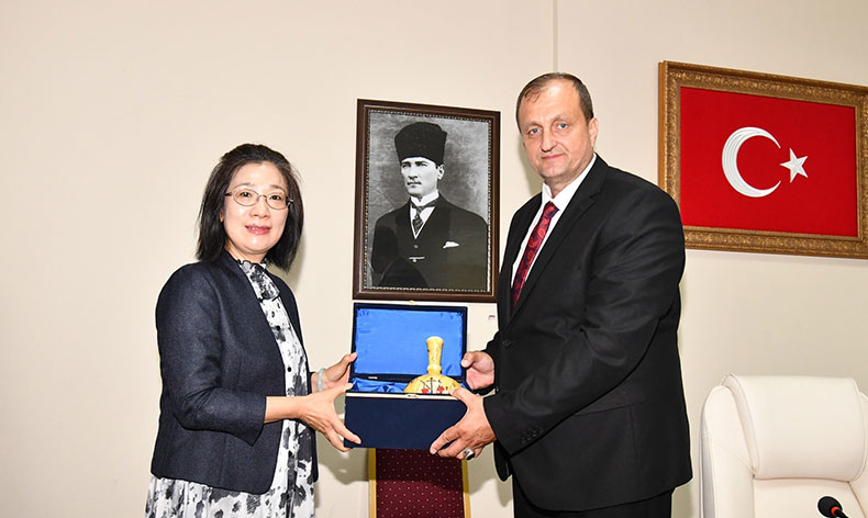 Bizler İznik Belediyesi olarak bu sanatın ülke ve dünya genelinde gelişmesi için siz değerli dostlarımız ile çalışıyoruz. Bu Ekim ayında gerçekleşecek Jingdezhen Uluslar arası Seramik Fuarı’na davetiniz için şimdiden teşekkür ediyoruz. İznik Belediyesi olarak bu önemli organizasyonda yer almayı umut ediyoruz. Bu vesileyle değerli ziyaretinizin her iki şehrimizin tanıtımı ve işbirliği için hayırlı olmasını temenni ediyor, tekrar hoş geldiniz diyorum” dedi.