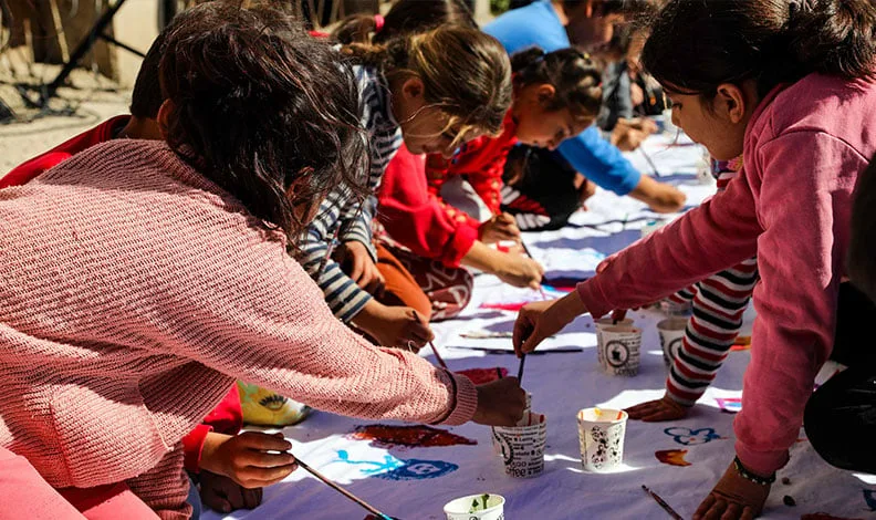 Ma Müzik Center paydaşlığıyla gerçekleştirilen atölyelerde eğitmenler, erbaneler ve çocukların ilgisini çekecek şarkılar eşliğinde mahalleleri gezerek çocukları topladı. Eğitmenler, çocuklarla birlikte şarkılar söyleyip, enstrüman çalarak ve resim yaparak atölye çalışması yaptı. Çember oluşturan çocuklar, doyasıya eğlenerek neşeli bir gün geçirdi.