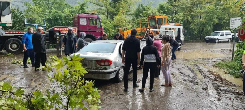 Yolun çökmesinin ardından Karabük’ten Bartın istikametine giden Ayhan Tunç yönetimindeki 78 T 6050 plakalı ticari taksi ile 18 BD 533 plakalı otomobil çöken yola düştü. Araçların içerisindeki 12 kişi kendi imkanlarıyla camlardan çıkarak sel sularına kapılmaktan son anda kurtuldu.