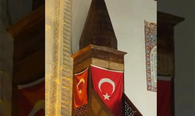 Muradiye Camii İmamı Muhammed Lütfi Taşcı, camilerde cuma hutbesi irad edilirken minbere Türk bayrağı asılmasını