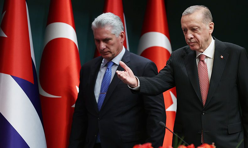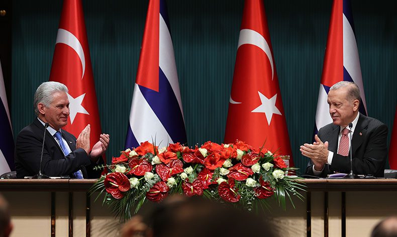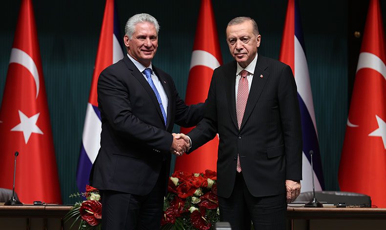 Latin Amerika ve Karayipler bölgesiyle ilişkilerin Türkiye’nin dış politikasının temel sütunlarından birini oluşturduğunu ifade eden Cumhurbaşkanı Erdoğan, “Küba ile iş birliği ve dayanışmamızı artırmayı özellikle önemsiyorum. Son dönemde Küba’dan ülkemize yönelik üst düzey ziyaretlerin artmasından memnuniyet duyuyorum. Devlet Başkanı sayın Diaz-Canel ile görüşmelerimizde Türkiye – Küba ilişkilerini tüm cepheleriyle ele aldık. İş birliğimizi kuvvetlendirmek yönünde güçlü ve karşılıklı iradeye sahip olduğumuzu görmek bizleri ayrıca mutlu etti. İlişkilerimizin gerçek potansiyelinin altında kalmasında Küba’ya tek taraflı uygulanan yaptırımların etkisinin bulunduğu aşikardır” ifadelerini kullandı.
