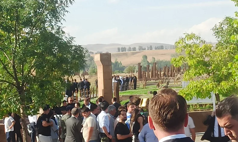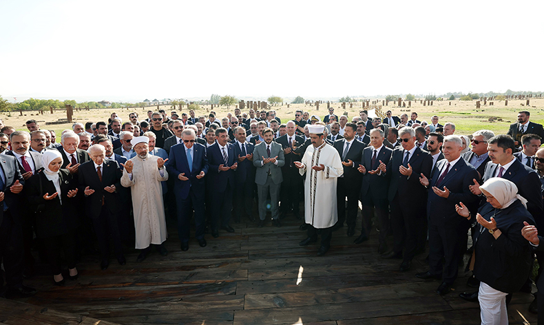Malazgirt Zaferi’nin 953’üncü yılı kutlamaları kapsamında Bitlis’in Ahlat ilçesinde düzenlenecek etkinliklere katılmak üzere Ahlat ilçesine gelen Cumhurbaşkanı Erdoğan, bakanlar kurulu, kuvvet komutanları ve kalabalık bir heyetle Bitlis’teki ziyaret ve programlarına devam ediyor. İl merkezindeki toplu açılış programları ve Ahlat ilçesindeki kutlama etkinliklerine katılan Erdoğan, ardından UNESCO Dünya Kültür Mirası Geçici Listesi’ndeki dünyanın en büyük Türk İslam mezarlığı olma özelliğini taşıyan Ahlat Selçuklu Mezarlığı’nı ziyaret etti. Beraberinde heyetle birlikte mezarlık ziyareti yapan Erdoğan, daha sonra Ahlat Sahil Güvenlik Karakol Komutanlığına geçti.
