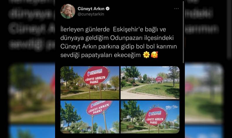 Yaklaşık 1 ay önce sosyal medya hesabından yaptığı paylaşımda Eskişehir’de kendisinin adının verildiği parka giderek eşinin sevdiği papatyaları ekeceğini söyleyen usta sanatçının ömrü, bu isteğini gerçekleştirmeye yetmedi. Bunun üzerine Odunpazarı Bölgesi’nde bulunan park, kreşte eğitim gören 5-6 yaş grubu çocuklar tarafından papatyalarla donatıldı. Belediye görevlileri ve 5-6 yaş grubundaki çocukla birlikte papatya ekilen Cüneyt Arkın Parkı, usta oyuncunun anısına hazırlandı.