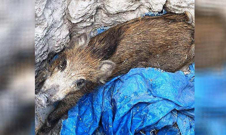 Altıntaş Orman İşletme Müdürlüğü Kızıldağ Orman İşletme Şefliği muhafaza memurları arazide define avcılarının açmış olduğu çukura düşen domuz yavrusunu boynuna ip geçirip kuyudan çıkararak tekrar doğaya saldılar.
