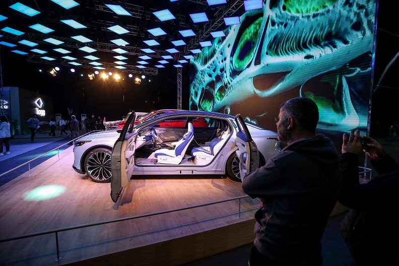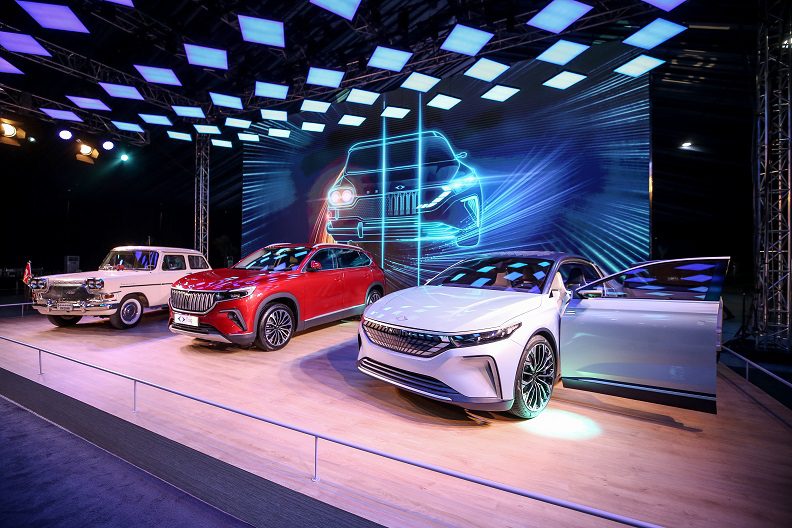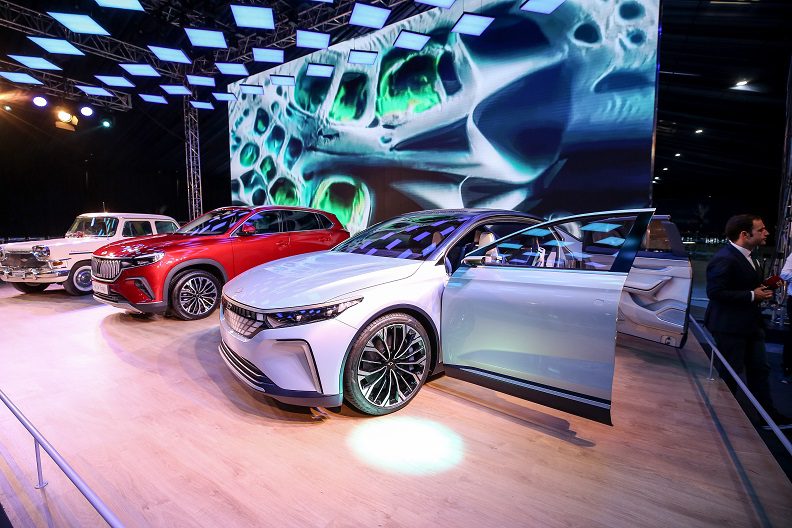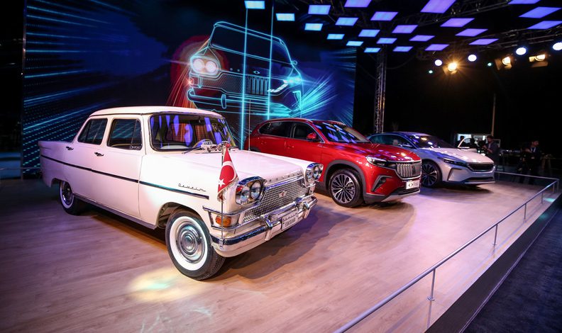 Burada oluşturulan fuaye alanında Togg’un C-SUV ve sedan modeli ile sergilenen Devrim otomobili davetlilerden yoğun ilgi gördü.
