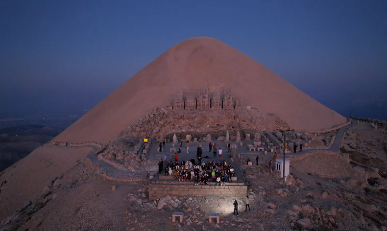 Güneşin doğuşunu izleyen ve daha sonra Nemrut Dağındaki heykelleri inceleyen grup daha sonra zirveden ayrıldı.