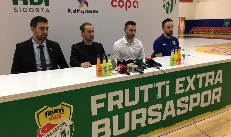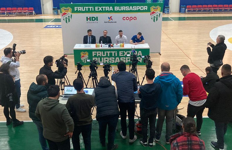 Barış Spor Salonu’nda gerçekleşen imza töreninde Bursaspor Basketbol Yönetim Kurulu Başkanı Sezer Sezgin, Frutti Extra Genel Menajeri Nedim Yücel ve basın mensupları katıldı.