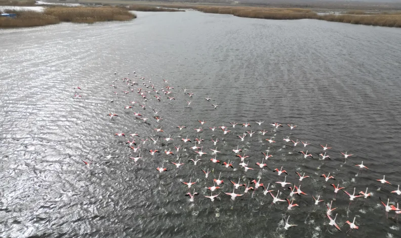 Flamingoların pembe renkleri, özellikle gölün yakınından geçen vatandaşların dikkatini çekti. Bu nadir görülen manzara, bölgedeki doğal yaşamın zenginliğini bir kez daha gözler önüne sererken, gölde su seviyesinin de arttığı gözlemlendi.