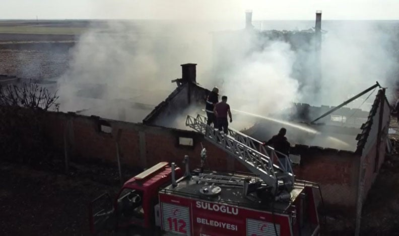 Edirne’nin Süloğlu ilçesine bağlı Geçkinli köyünde İbrahim Ö.’ye ait çiftlikte henüz belirlenemeyen bir nedenle yangın çıktı. İhbar üzerine olay yerine itfaiye ve jandarma ekipleri sevk edildi.