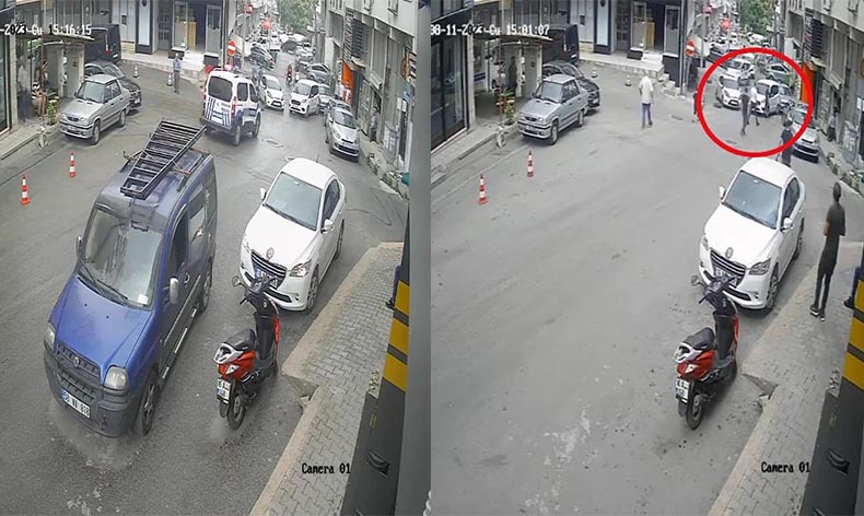 Hızla ilerleyen aracı gören seyir halindeki diğer sürücüler, kaçmak için manevra yapmaya çalışsa da kazadan kaçamadı. Kaza nedeniyle olay yerine polis çağrıldı. İhbar üzerine polis ekipleri aynı sokak üzerinde seyir halindeyken, bu kez de tali yoldan gelen motosikletli kurye, ekip aracına çarptı. Peş peşe gelen kazalar güvenlik kamerasına anbean yansıdı.