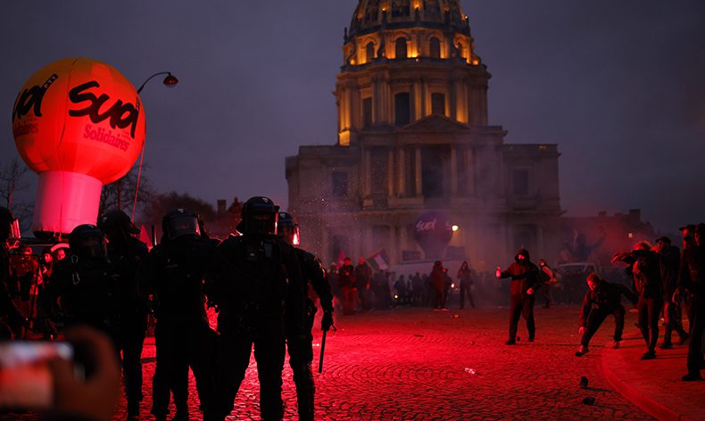 Fransa’da emeklilik yaşının kademeli olarak 62’den 64’e yükseltilmesini öngören ve tepkilere neden olan emeklilik reformu protestoları genel olarak barışçıl geçse de polis ile radikal gruplar arasında yer yer çatışmalar yaşandı. Polis, başkent Paris’te Napolyon’un mezarının bulunduğu Les Invalides’in de aralarında bulunduğu bazı bölgelerde radikal grupları dağıtmak için göz yaşartıcı gaz ve cop kullandı. Çıkan olaylarda 30 kişinin gözaltına alındığı ifade edildi.