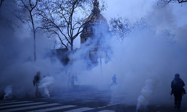 Fransa’da emeklilik yaşının kademeli olarak 62’den 64’e yükseltilmesini öngören ve tepkilere neden olan emeklilik reformu protestoları genel olarak barışçıl geçse de polis ile radikal gruplar arasında yer yer çatışmalar yaşandı. Polis, başkent Paris’te Napolyon’un mezarının bulunduğu Les Invalides’in de aralarında bulunduğu bazı bölgelerde radikal grupları dağıtmak için göz yaşartıcı gaz ve cop kullandı. Çıkan olaylarda 30 kişinin gözaltına alındığı ifade edildi.