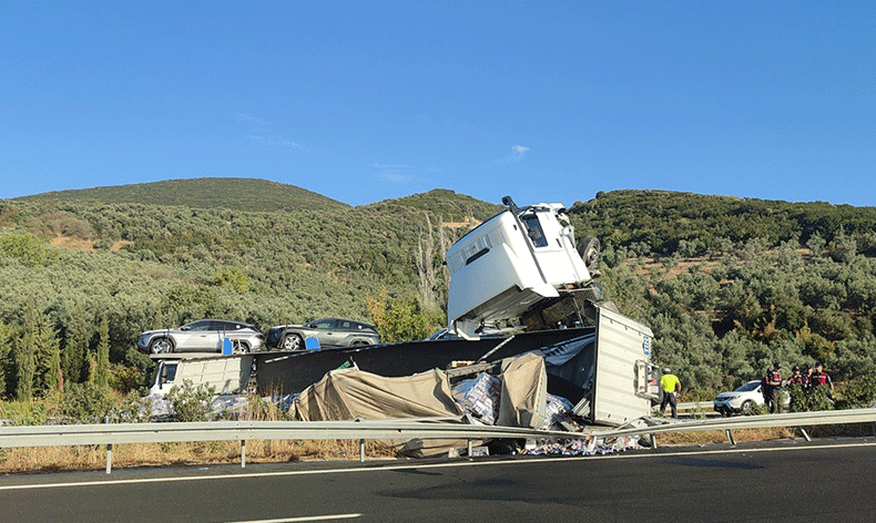 Yolun sağındaki bariyere çarpan tır daha sonra yol ortasına devrilerek sürüklenerek orta refüje çarptı. Kaza sonrasında tırın kupası şaha kalkarken, tır dorsesinde bulunan yaklaşık 25 ton enerji içeceği yola saçıldı. Kaza sonrasında olay yerine sağlık ve itfaiye ekipleri sevkedildi. Hafif yaralı olan tır sürücüsü Ali Güler ambulansla Gemlik Devlet Hastanesine kaldırılarak burada tedavi altına alındı.