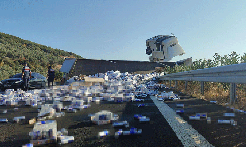 Bursa’da 25 ton enerji içeceği yüklü tır devrildi