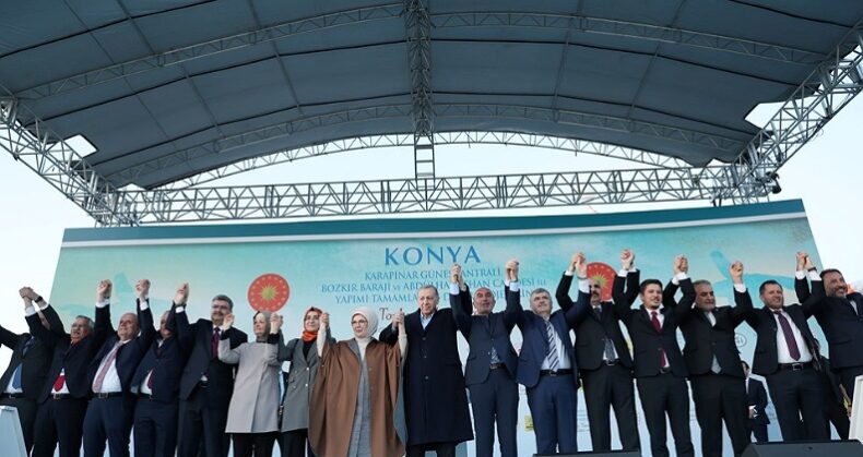 Konya’nın gençlerini, çiftçilerini, sanayicilerini, hanım kardeşlerimi bugün bir kez daha saygıyla selamlıyorum. Rabbim’e 6 ay sonra yeniden Konyalı kardeşlerimle kucaklaştırdığı için hamd ediyorum. Maşallah meydanlara sığmayan bir Konya görüyorum. 14 Mayıs’ta destan yazmaya hazırlanan Konya görüyorum. Ahde vefanız için, sevdanız için her birinize şükranlarımı sunuyorum. Buradan soruyorum, Konya 14 Mayıs’ta durmak yok yola devam diyor muyuz?