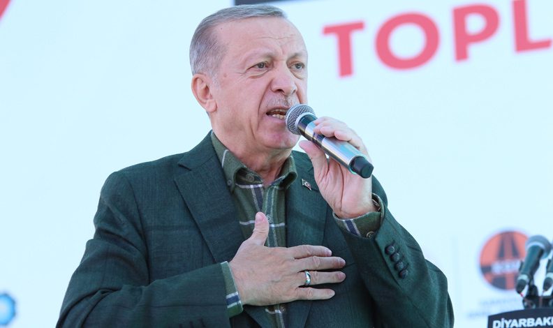 Hz Ömer’in fethinden beri bizim olan Diyarbakır’a göz diken iflah olmaz diyen Cumhurbaşkanı Erdoğan, “Göz dikenin iflah olmayacağı açıktır. Şu Diyarbakır surlarının dili olsa da konuşsa. Daha düne kadar bu coğrafyanın tarihi ile kültürü ile sanayisi ile en önemlisi insanı ile en seçkin şehri olan Diyarbakır’ın kolunu, kanadını kıranların inadını anlatsa. Demokrasi lafını eksik etmeyenlerin yaptıklarını anlatsa. Bunların nasıl zulmün, kan emicisi olduğunu anlatsa. Sürekli Kürt lafı ederek Kürtleri sömürenlerin yaptıkları riyakarlıkları anlatsa. Bunların adı Kürt, kendileri Kürtlükle alakası yok. Kürt kardeşlerime en büyük zumlu yapan bunlar. Kandil’e benim Kürt çocuklarımın kardeşlerini kaçıran her türlü tacizi yapan bunlar değil mi? Öyleyle 7 ay var. 7 ay sonra yapılacak seçimlerde bütün bunların hesaplarını sormaya var mıyız” dedi.