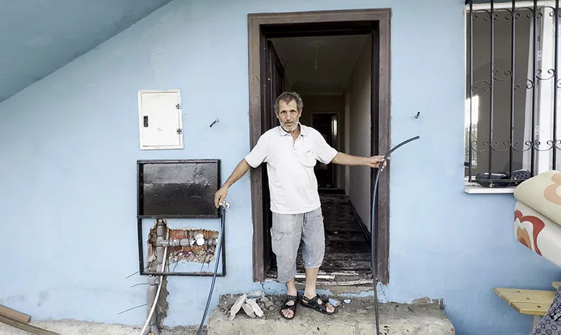 Yaşanan durumu tatil için evde kalmaya geldiğinde fark eden ev sahibinin akrabası Mustafa Baş, “Burası kayınçomun evi ve burada kimseye düşmanlığımız yok. Hortumu elektrik borusuna takarak çeşmeyi açıyorlar ve eve su dolduruyorlar. Yaklaşık 10 santimetre su doluydu evin ve içi bir hafta boyunca su akmış.