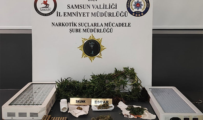 Olay, Samsun’un Atakum ilçesinde meydana geldi. Edinilen bilgiye göre, Samsun Emniyet Müdürlüğü Narkotik Suçlarla Mücadele Şube Müdürlüğü ekipleri, alınan istihbari bilgiler doğrultusunda Atakum ilçesinde M.B.’ye (35) ait eve operasyon düzenledi. Evde yapılan aramada, uyuşturucu üretimi için kurulan özel bir iklimlendirme düzeneği ortaya çıktı. Operasyon sonucunda 14,37 gram esrar, 1,50 gram skunk, 2 kök kenevir bitkisi ve 50 adet tabanca fişeği ele geçirildi. Gözaltına alınan M.B.’nin ayrıca ” Uyuşturucu madde kullanmak” suçundan 2 yıl 1 ay kesinleşmiş hapis cezası olduğu tespit edildi.