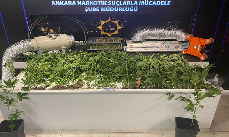 Operasyonda yapılan aramalarda ise, 57 kök kenevir bitkisi, 54 adet Hint kenevir fidesi, 11 adet aydınlatma sistemi, 1 adet PH ölçer, 2 adet zaman ayarlı priz, 1 adet termometre, 2 adet bitki vitamini, 2 adet bitki sulamada kullanılan hortum, 2 adet çoğaltıcı ara kablosu ve 1 adet havalandırma motoru ele geçirildi.