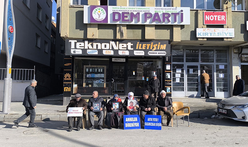 Çocuklarının dağa kaçırılmasından DEM Parti’yi sorumlu tutan ailelerin 7 Nisan 2021’de başlattığı oturma eylemi, 178’inci haftada da devam ediyor. Aileler, çocuklarının en kısa sürede güvenli bir şekilde evlerine dönmesini beklerken, toplumun da bu konuda destek olmasını istedi. Çocuklarına kavuşma ümidiyle her hafta çarşamba günü DEM Parti il binası önünde bir araya gelen aileler, “Anneler direniyor” ve “Yeter artık evlatlarımızı bırakın” pankartları açtı. Anne ve babalar, yıllardır hasretle bekledikleri çocuklarına teslim olmaları için çağrıda bulundu.