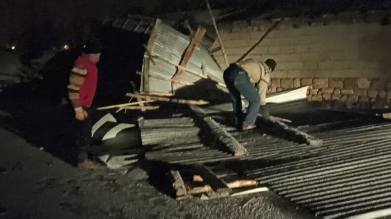 Erciş’in Çelebibağı Mahallesi’nde akşam saatlerinde çıkan fırtına nedeniyle bir evin ve ahırın çatısı uçarak yola savruldu. Yolu tamamen kapatan çatılar vatandaşlar tarafından kaldırılırken, olayda can kaybı ve yaralanma yaşanmadı.