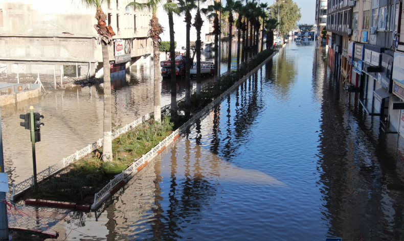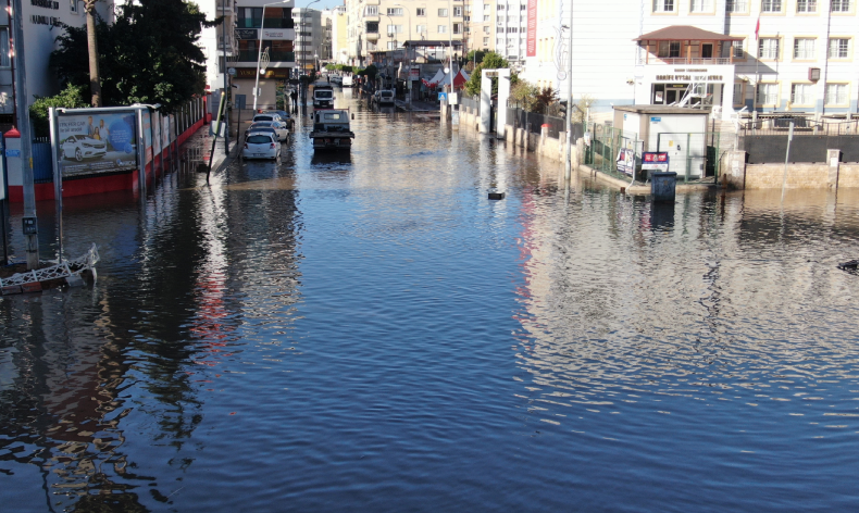 İskenderun’da etkili olan fırtına sonrası deniz ve kara birleşmişti. Kentin işlek noktaları su altında kalmış, caddeler adeta göle dönmüştü. İskenderun’da fırtına etkisini yitirse de caddelerdeki su çekilmedi. Görünümüyle Venedik’i andıran İskenderun’da ekipler, çalışmalarını sürdürüyor. İş yerleri su altında kalan esnaf, iki gündür dükkanını açamıyor.