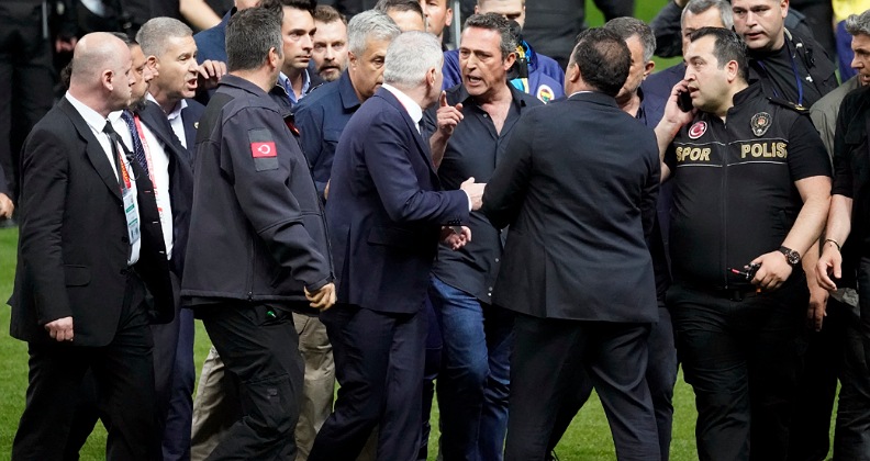 Bunun üzerine Galatasaraylı idareciler tepki gösterince saha içinde tekrar gerginlik yaşandı. Güvenlik güçleri araya girerek Fenerbahçeli yönetici ve oyuncuları soyunma odasına aldı.