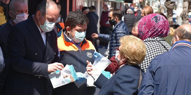 Gemlik Belediyesi ekipleri sokak sokak gezerek maske dağıtımını sürdürüyor. Pazar yeri alanında başlayan dağıtım, ilçenin merkez İstiklal Caddesi ile çevre caddelerinde de devam etti. Gemlik Belediye Başkanı Sertaslan’ın da katıldığı maske dağıtımına elli kişilik belediye çalışanı ile gönüllüler de eşlik etti.