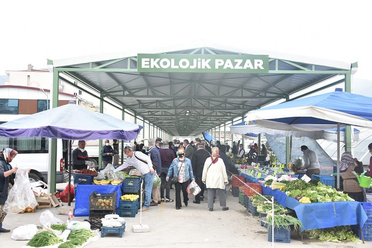 Gemlik çevre köylerinde yaşayan vatandaşların kendi yetiştirdiği doğal ürünleri satabilecekleri pazar yerinde çevre düzenlemesi de yapıldı. Kapalı pazar yerinin üst katında çeşitli düzenlemelere ihtiyaçlar duyuluyordu. Üzeri açık olan pazar alanında yağışlı havalarda tezgâhlar zarar görüyor, rüzgâr sebebiyle ürünler aşağıya uçuyordu. Üzeri 75 metre uzunluğunda çatı ile kapatılan ekolojik pazarda bir buçuk metrelik 100 tezgâh, sosyal mesafe kurallarına da uyularak yeniden düzenlendi ve hizmete başladı.