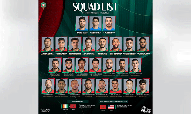 Fas, 14 Ekim’de hazırlık maçında Fildişi Sahili ile, 17 Ekim’de de Afrika Uluslar Kupası elemelerinde Liberya ile karşılaşacak. Fas Futbol Federasyonu, resmi internet sitesinden yaptığı açıklamayla, bu müsabakalar için aday kadroyu duyurdu. Galatasaray’dan Hakim Ziyech de listede yer aldı.