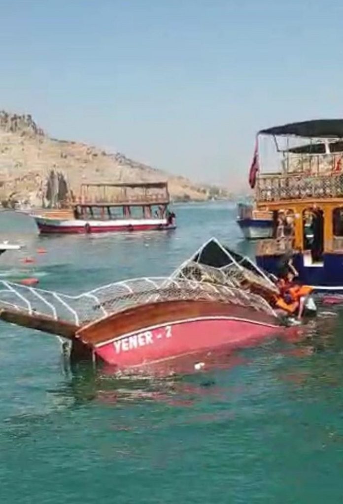 Fırat Nehri üzerindeki Birecik Baraj Gölü’nde, 26 yolcusu bulunan tur teknesi, gezi sırasında su almaya başladı.