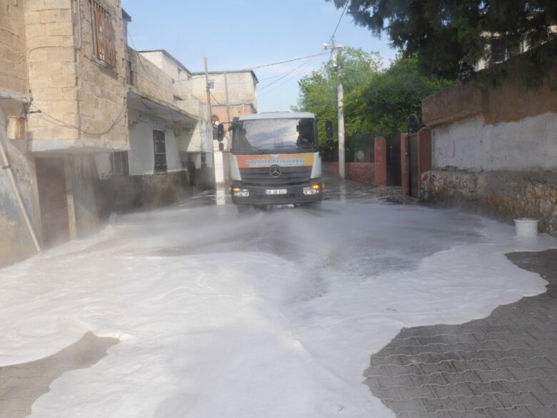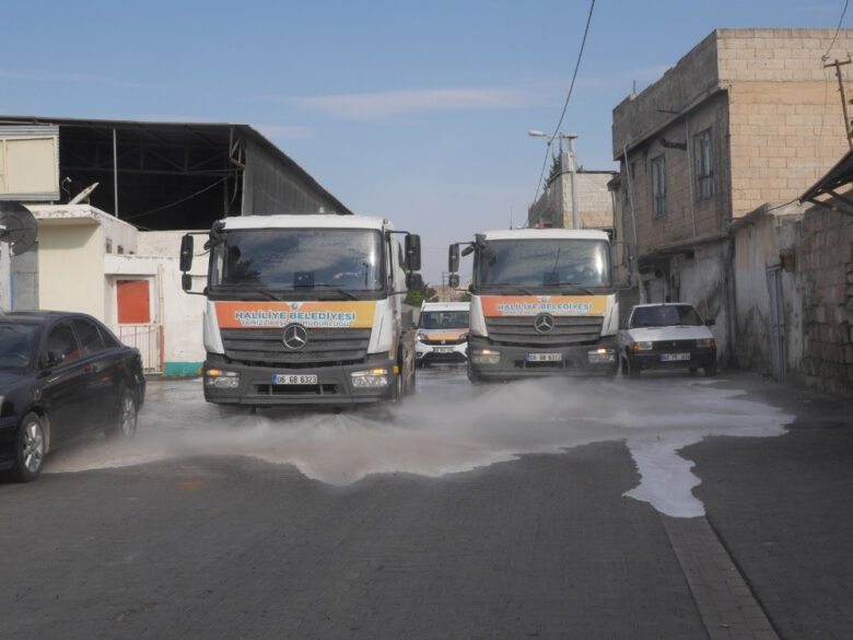 Haliliye Belediyesi, Covıd-19 salgınından korunma tedbirleri kapsamında başlattığı faaliyetlere devam ediyor. Salgın nedeniyle ilan edilen 3 günlük sokağa çıkma kısıtlamasının ilk gününde Haliliye Belediyesi Temizlik İşleri Müdürlüğüne bağlı temizlik ve dezenfektasyon ekipleri, Sancaktar ve Şair Nabi mahallelerinde bulunan cadde ve sokakları köpüklü su ile yıkayarak dezenfekte etti.