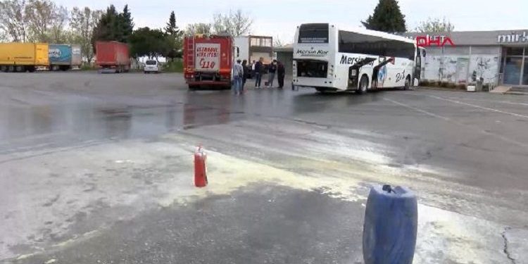 İstanbul Sancaktepe TEM Otoyolu’nda Mersin’den İstanbul’a gelen 33 YF 545 plakalı şehirlerarası otobüsün fren ve lastiklerinin olduğu kısımdan saat 07.00’da yangın çıktı.