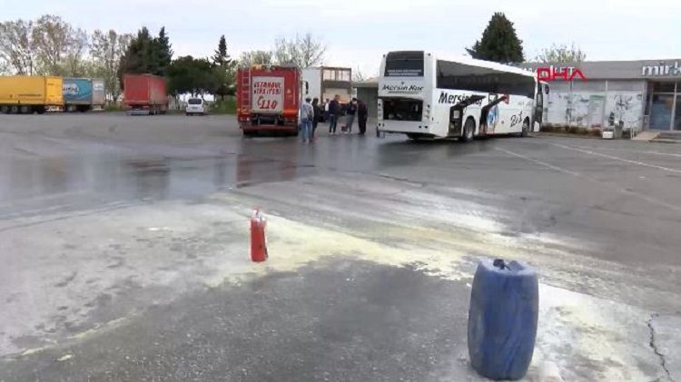 Otobüsteki bir yolcu “Seyir halinde ilerliyorduk, bir anda dumanlar yükselmeye başladı lastiğin olduğu kısımda. Yangına kendileri ve itfaiye müdahale etti” diye konuştu. Yangının söndürülmesinin ardından yolcular başka bir otobüsle yollarına devam etti.