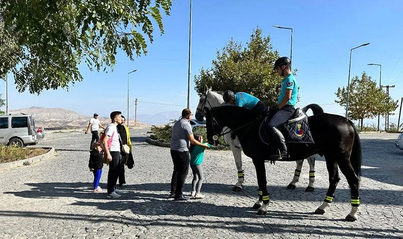 Elazığ İl Jandarma Komutanlığı, Atlı Jandarma Timi, tarihi Harput Mahallesi’nde görevini sürdürüyor. Vatandaşlar ise atlı birliklere büyük ilgi gösteriyor. Kimisi severken kimisi ise fotoğraf çektiriyor. Atlı jandarma ekiplerinin, görevine belirli aralıklarla devam edeceği bildirildi.