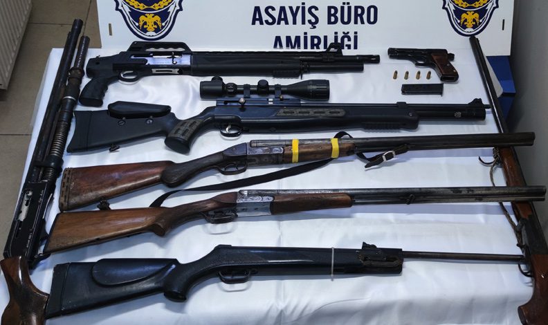 Yapılan aramalar neticesinde toplam 7 adet ruhsatsız av tüfeği, bir adet 9 mm. çaplı ruhsatsız tabanca, tabancaya ait şarjör ve 4 adet dolu fişek, bir adet şase motor numaraları kazılı motosiklet geçirildi.