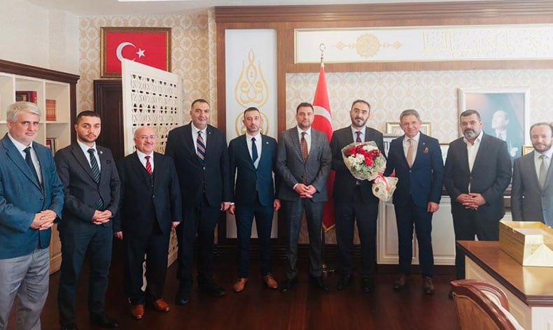 Milliyetçi Hareket Partisi Bursa İl Başkanı Muhammet Tekin, İl Başkan Yardımcısı Özgün Güneş, Türk Diyanet Vakıf-Sen Genel Başkan Yardımcısı Hilmi Şanlı, Bursa Şube Başkanı Eyüp Bulut ve İl Müftülüğü İş Yeri Temsilcisi Hasan Altay’dan oluşan heyet Bursa İl Müftüsü Yavuz Selim Karabayır’ı makamında ziyaret etti. “Her minareye bir bayrak, her minareye bir sancak” sloganıyla kampanya başlattıklarını söyleyen Tekin, “Türkiye Cumhuriyeti’nin 100. yılını idrak edeceğimiz 29 Ekim 2023 tarihinde ‘her minareye bir bayrak, her minareye bir sancak’ sloganımızla kuruluş şehri Bursa’da böyle bir kampanya başlatmak için ilk bayrağımızı da size takdim etmek istiyoruz” dedi.