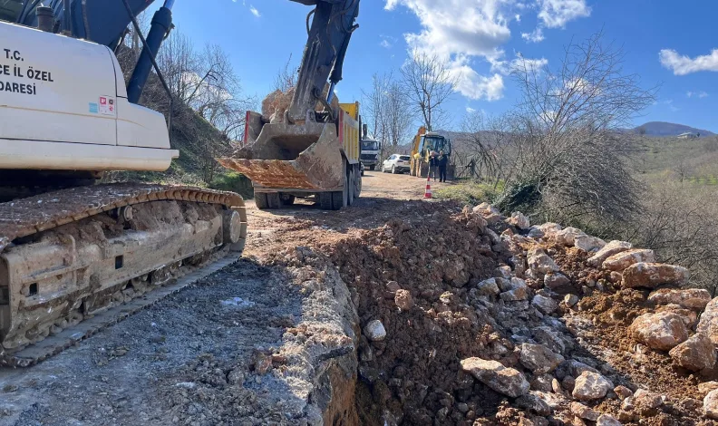 Akçakoca ilçesine bağlı Koçar köyünde heyelan sonrası bölgede oluşan risklerin ortadan kaldırılması, yol güvenliğinin sağlanması ve yeni toprak kaymalarının önüne geçilmesi amacıyla başlatılan çalışmalarda, zemin güçlendirme ve stabilizasyon uygulamaları titizlikle yürütülüyor. Ekipler, alanda gerekli güvenlik önlemlerini alarak taş tahkimatı ve dolgu işlemlerini program dahilinde sürdürüyor.