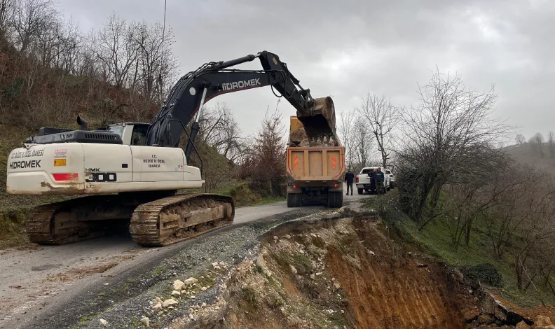 Düzce’de kış şartlarında birçok noktada heyelan meydana geldi. Özel İdare ekipleri heyelan meydana gelen yerlerde hızlıca çalışma başlattı. Akçakoca ilçesi Koçar köyünde meydana gelen heyelan nedeniyle risk oluşan alanda güvenliğin sağlanması ve yolun yeniden ulaşıma uygun hale getirilmesi amacıyla yürütülen çalışmalar, en kısa sürede tamamlanarak yol tekrar güvenli şekilde kullanıma açıldı.