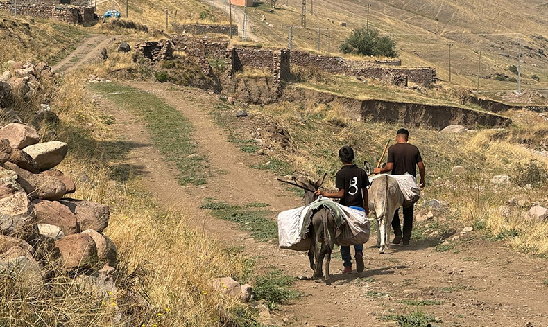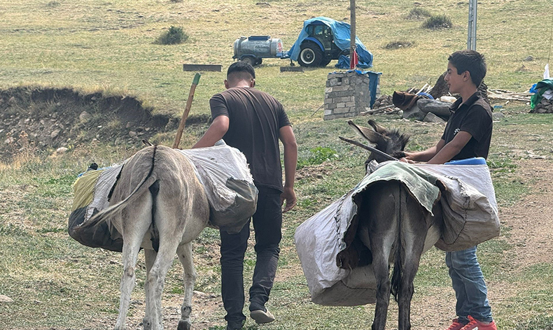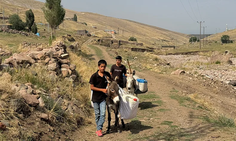 Iğdır’ın Asma köyünde yaşayan çocuklar, günlük hayatlarının bir parçası haline gelen su taşıma zorluğuyla mücadele ediyor. Yaz aylarının kavurucu sıcaklarında, köydeki çeşmelerin kuruması ya da yetersiz su akıtması, çocukları her gün kilometrelerce uzaklıktaki su kaynaklarına yönlendiriyor. Köylerin birçoğunda su kaynakları ve altyapı eksiklikleri nedeniyle evlere su ulaştırılamazken, bu eksiklik özellikle çocuklar için büyük bir yüke dönüşüyor. Genellikle ailelerine yardım etmek için su taşıyan çocuklar, sabah erken saatlerde eşeklerine bidonları yükleyerek, bazen kilometrelerce yol kat etmek zorunda kalıyor. Köy halkı, yıllardır süren bu su sıkıntısının bir an önce çözülmesini talep ediyor. Bazı köylüler kendi imkanlarıyla kuyular kazsa da, bu da her zaman yeterli olmuyor. Köyde su şebekeleri çekildiği halde bir su kaynağının bulunmamasından dolayı çeşmeler sürekli akmıyor.