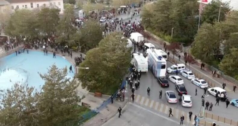 İmamoğlu’nun otobüsü ayrılırken polis de TOMA’larla olaya müdahale etti. Mitingde toplanan kalabalık ile bozkurt işareti yapan grup birbirlerine ellerindeki eşyaları fırlattı.