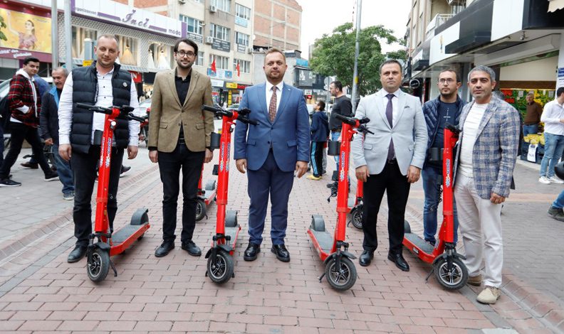 Basın açıklamasında konuşan Belediye Başkan Yardımcısı Rıdvan Kocaağa, “İnegöl’ümüzde e-scooter uygulaması başladı. Bildiğiniz gibi özellikle büyükşehirlerde, yurt dışında bu uygulamayı görüyoruz. Günden güne bu uygulamanın yayıldığını görüyoruz. Şehrimizde de özel bir firma tarafından e-scooter uygulaması başlatıldı. Tabi bunlar bizim yetkimizde değil. Ulaştırma ve Altyapı Bakanlığı kararına göre, gerekli yeterliliği sağlayan her firma şehirlerde bu uygulamayı gerçekleştirebiliyor. İnegöl’ümüzde yapılması noktasında da UKOME’den izin alınarak firma uygulamaya başladı. Şu anda 200 scooter İnegöl sokaklarında. Burada önemli olan şu; bu araçları kullanan tüm vatandaşlarımızdan azami dikkat göstermelerini rica ediyorum. Trafik kurallarına ve scooter kurallarına uymaları adına vatandaşlarımıza çağrıda bulunuyorum. Yine yol ve kaldırım kenarlarında scooter kirliliği oluşma riski de var. Zamanla bu kötü görüntü oluşmaması adına bir dizi önlemler de alınacak. Uygulamanın şehrimize, vatandaşlarımıza ve uygulayıcı firmaya hayırlı olmasını diliyorum” dedi.