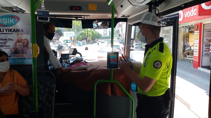 Yolcu kapasitesi ve maske denetiminde bulunan ekipler, yolcu ve sürücüleri koronavirüs tedbirleriyle ilgili bilgilendirdi.