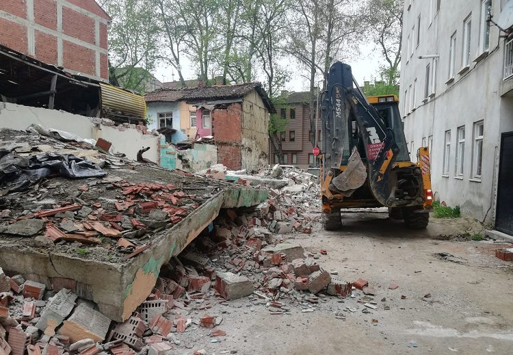 İlk yıkım Mahmudiye Mahallesi 2. Çıkmaz Sokakta yapıldı. Uzun süredir kullanılmayan metruk binanın tehlike arz etmesi nedeniyle ahşap evin sahibine yıkılmasıyla ilgili tebligat yapıldı. Yer sahibinin yıkımı belirtilen süre içerisinde yapmaması üzerine, bu sabah Fen İşleri Müdürlüğü ekipleri binanın yıkımını kontrollü şekilde gerçekleştirdi.