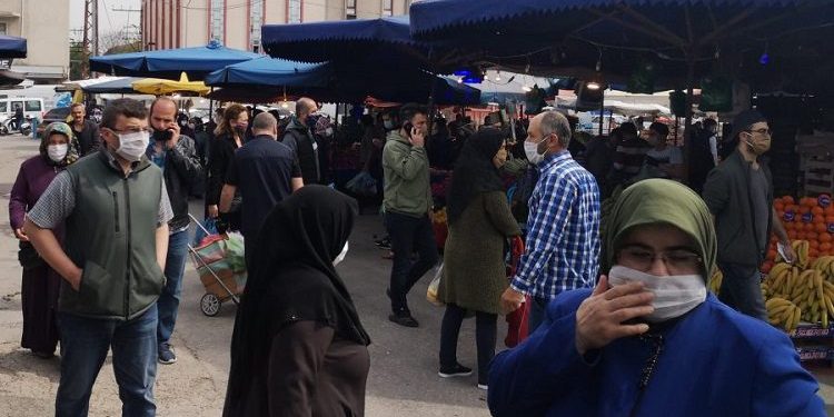İnegöl ilçesindeki pazar yerinde, sosyal mesafe kuralına çoğu kişinin uymadığı gözlendi. Pazar girişinde önlem alan polis ve zabıta ekipleri, sık sık sosyal mesafe uyarısında bulundu.