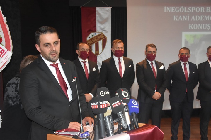 Yönetim kuruluyla birlikte sahneye çıkan başkan adayı Kani Ademoğlu, “Gerçekleştirmekte olduğumuz kongre hayırlı olsun. İneglöspor’a değer vermiş tüm sevdalılara çok teşekkür ediyorum. Bizim İnegölspor’a sevdamız çocukluktan gelmiştir. Bugün ben ve arkadaşlarımız bütün fedakarlıklar yaparak İnegölspor’u yönetmeye talibiz. Takdir edersiniz ki İnegölspor ulusal çapta bir marka değerine sahiptir. Günümüz dünyasında bir şehrin bilinir olmasını sağlayan önemli faktörlerden biri de futboldur. Bir kulüp için en önemli konu idari ve mali disiplini sağlamaktır. Biz bunun için planlamalar yapıp çalışmaya talibiz. Biz bu projeler için gerekli hazırlıkları yaptık. Biz, sizlerden güven oyu alırsak çalışmalarımıza başlayacağız. Uzun zamandır projemiz olan resmi store mağazamızı takımımıza kazandırmak istiyoruz. Stadyum projemizi de hayata geçirmek istiyoruz. Ben ve ekibim hayallerimizi gerçekleştirmek adına desteklerinize talibiz” ifadelerini kullandı.