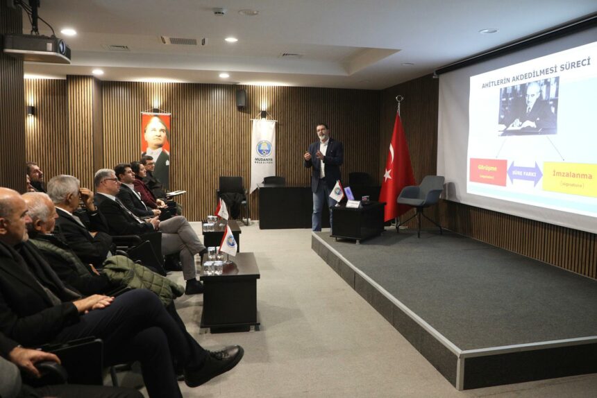 Törenin ardından gerçekleşen söyleşide Bursa Uludağ Üniversitesi Uluslararası İlişkiler Bölümü Öğretim Üyesi ve Diplomasi Araştırmaları Derneği Genel Sekreteri Prof. Dr. Barış Özdal, “İsmet İnönü’nün Başbakanlık ve Cumhurbaşkanlığı Dönemlerinin Karşılaştırılmalı Diplomatik Analizi” başlıklı söyleşisiyle Mudanyalılarla bir araya geldi. İsmet İnönü’nün Başbakanlık ve Cumhurbaşkanlığı yaptığı dönemlerin diplomatik açıdan karşılaştırmasını sayısal verilerle anlatan Prof. Dr. Özdal, İnönü’nün siyasi hayatı boyunca üç farklı dönemde görev yaptığını, Mudanya’nın diplomasi tarihi açısından büyük bir lidere ev sahipliği yaptığını hatırlattı.