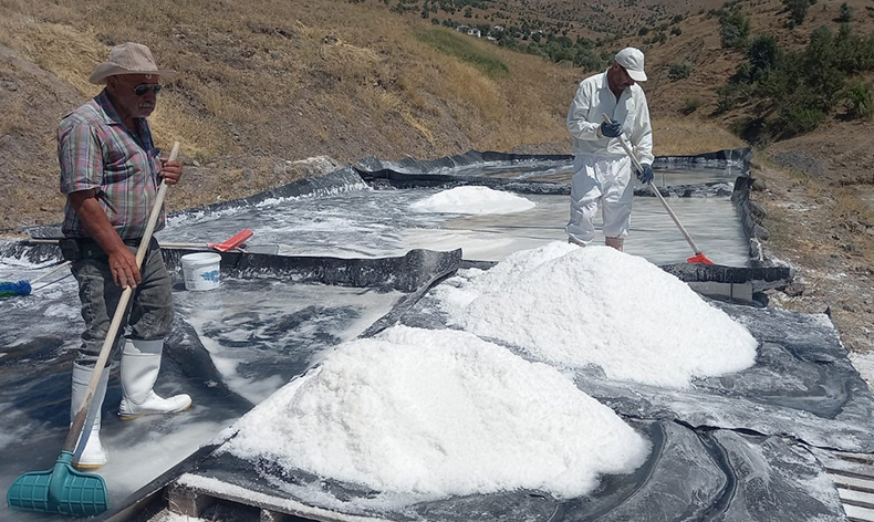 Tunceli’nin Pülümür ilçesinde bulunan 3 tuzladan yıllık bin tonun üzerinde kaynak tuzu üretimi gerçekleştiriliyor. Haziran ayının ilk haftasında üretime başlanan tuzlalardaki mesai, mevsime göre eylül ayı sonuna kadar devam ediyor. Yeraltındaki kaya tuzu kaynağına tatlı suyun geçmesi sonucu iyon haline gelen tuzlar, biriktirme havuzlarına akıtılıyor. Tuzlar, burada dinlendirildikten sonra küçük kristalize havuzlara geçiyor. Bu havuzlarda biriken tuz, 3-4 günde bir çekiliyor. Doğal kaynak tuzları, birlik, ikilik, beşlik, onluk ve sofralık olarak paketlendikten sonra iç piyasanın yanı sıra yurt dışına ihraç ediliyor.